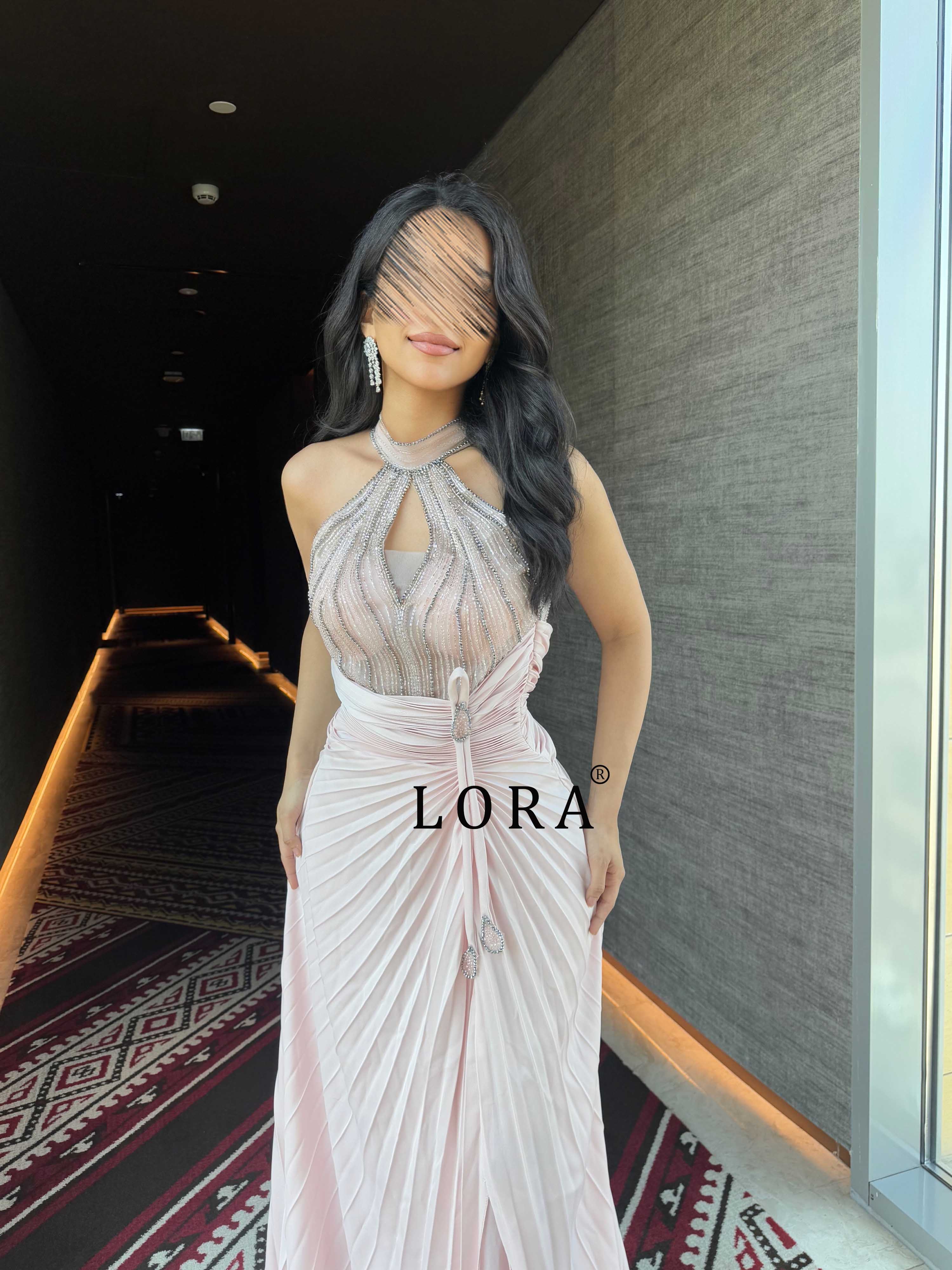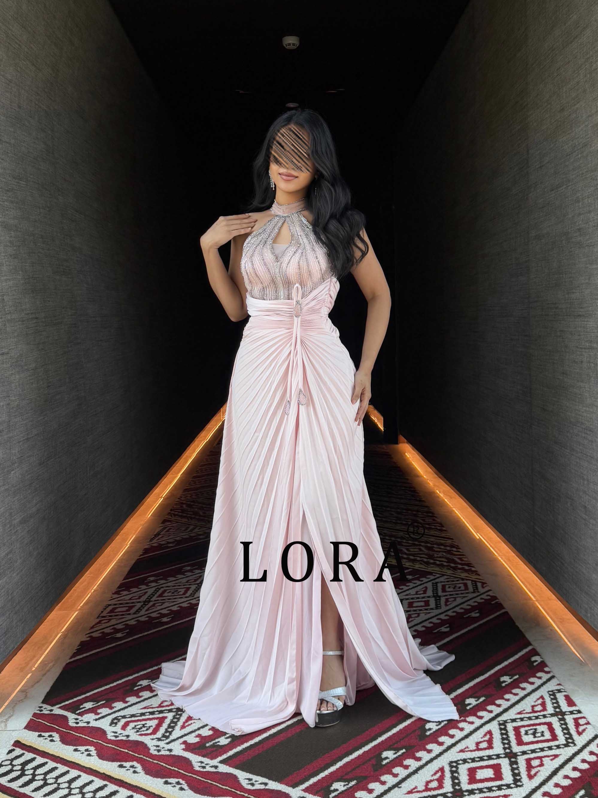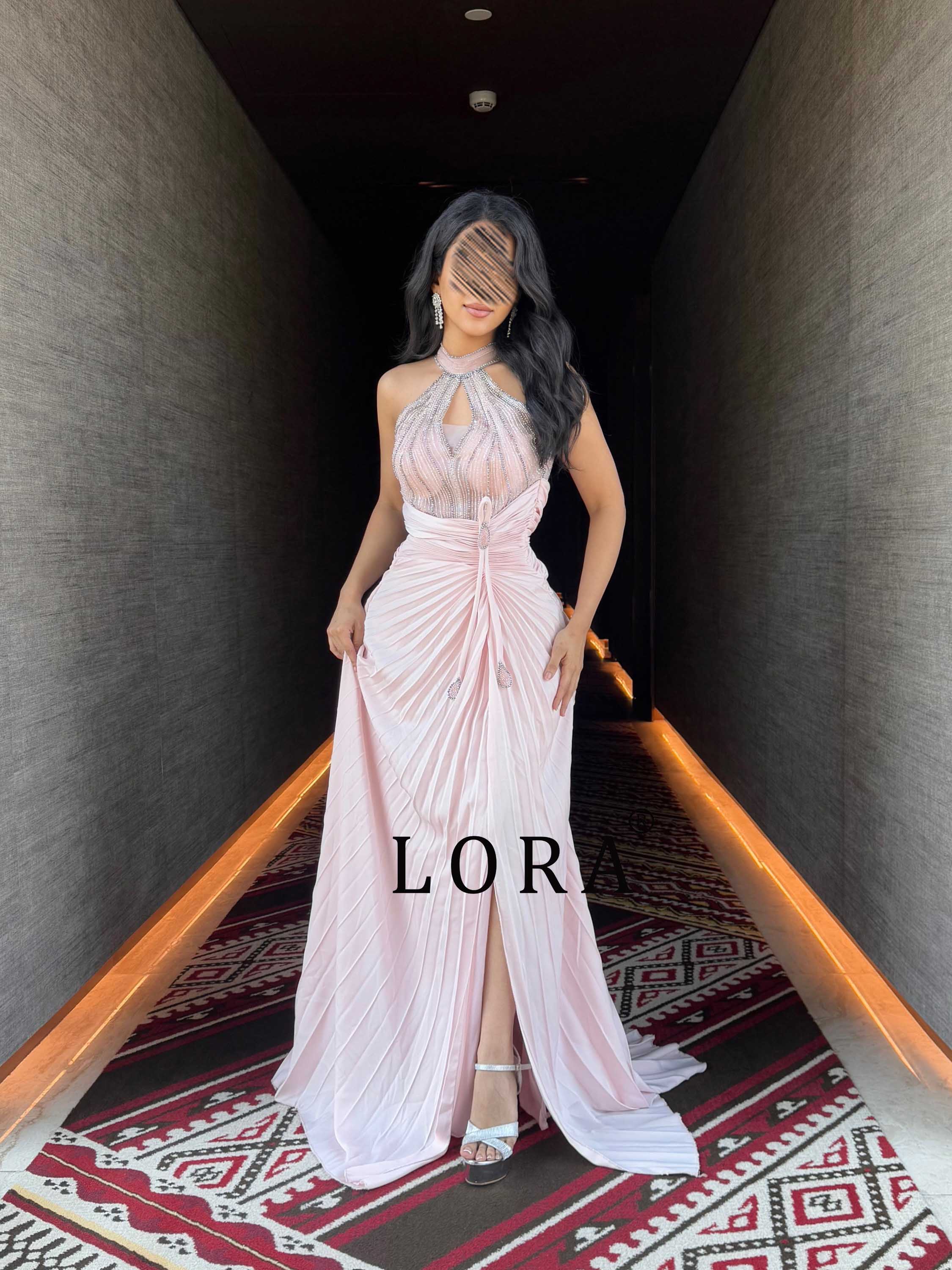 استمتعي بإطلالة ساحرة لا تُنسى مع فستان السهرة الفاخر المصمم خصيصًا لذوقك الرفيع. يتميز هذا الفستان بقماش ناعم وانسيابي ينسدل بأناقة، مع تفاصيل براقة من الفصوص اللامعة الموزعة بعناية لإضفاء لمسة فخامة ورقي على إطلالتكِ.