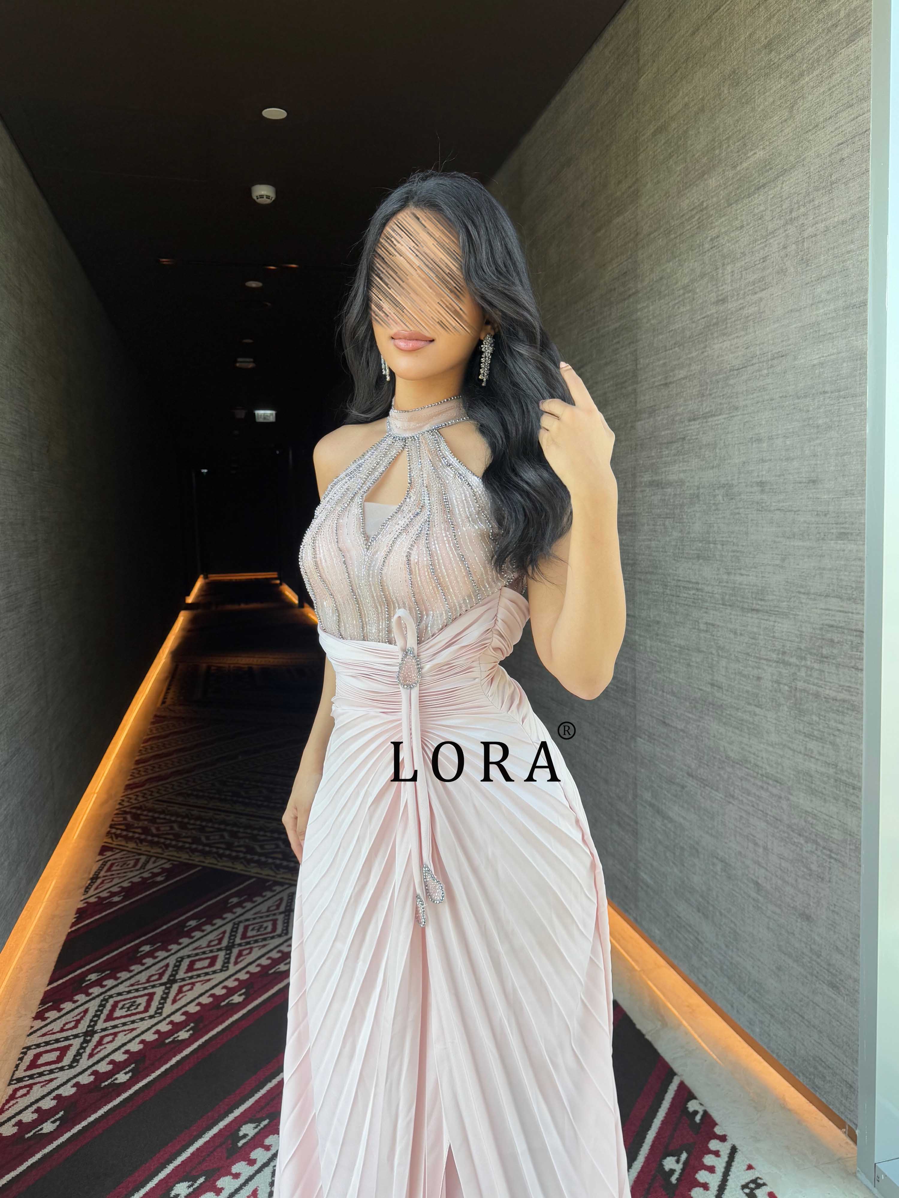 فستان سهره مزين بفصوص انيقة بربطة حول العنق