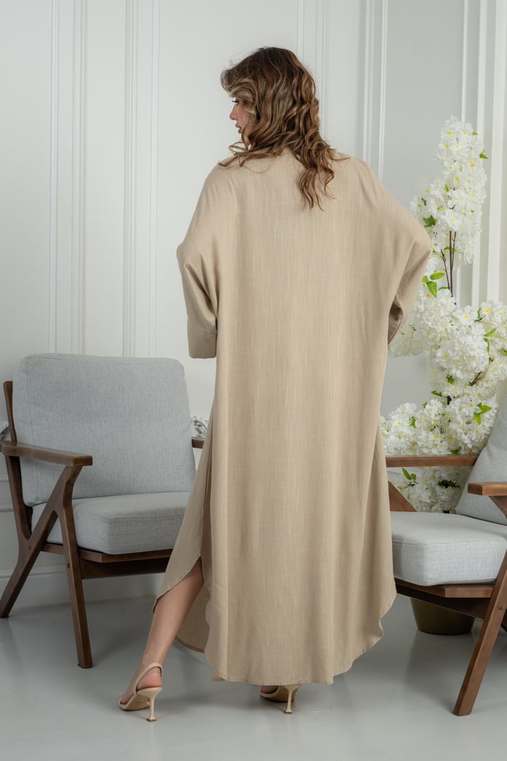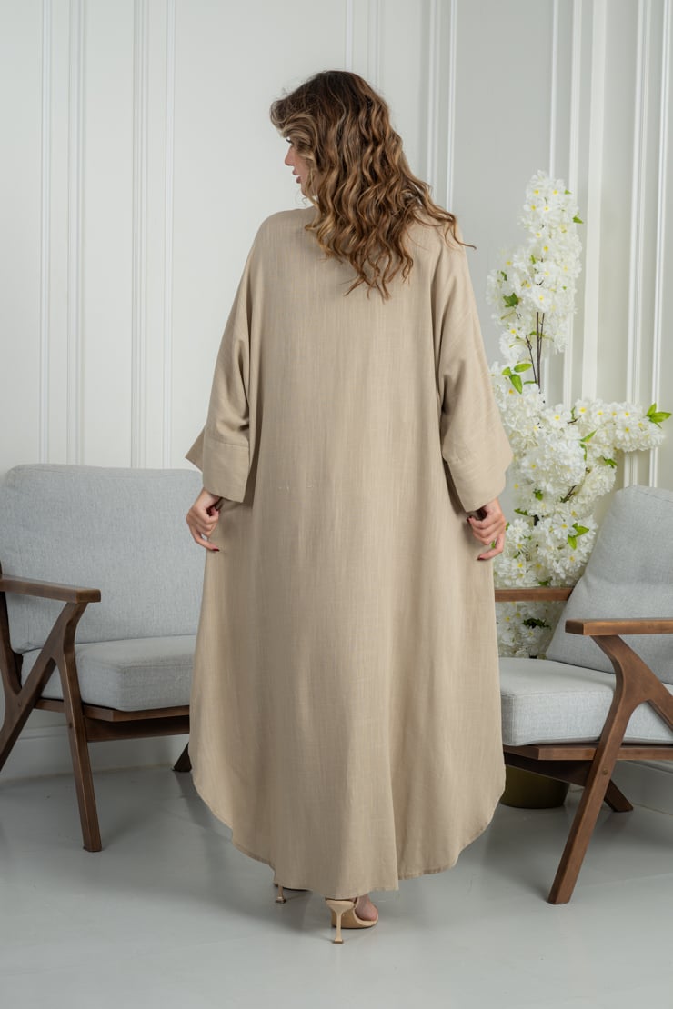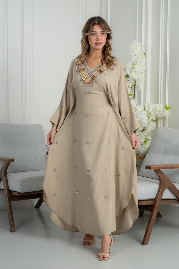 جلابية تجمع بين البساطة والرقي، بتصميم مريح يبرز الأنوثة ويمنح إطلالة هادئة وأنيقة تناسب الذوق الراقي.