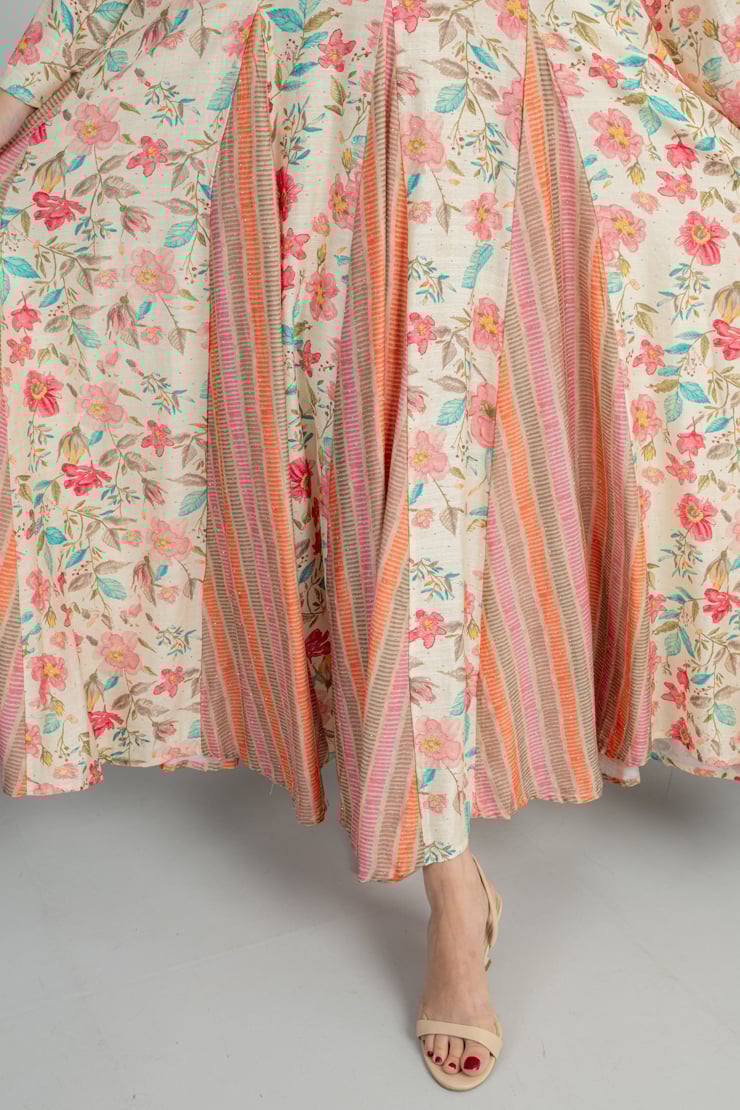 اللون: درجات فاتحة مع نقشة زهرية متعددة الألوان
