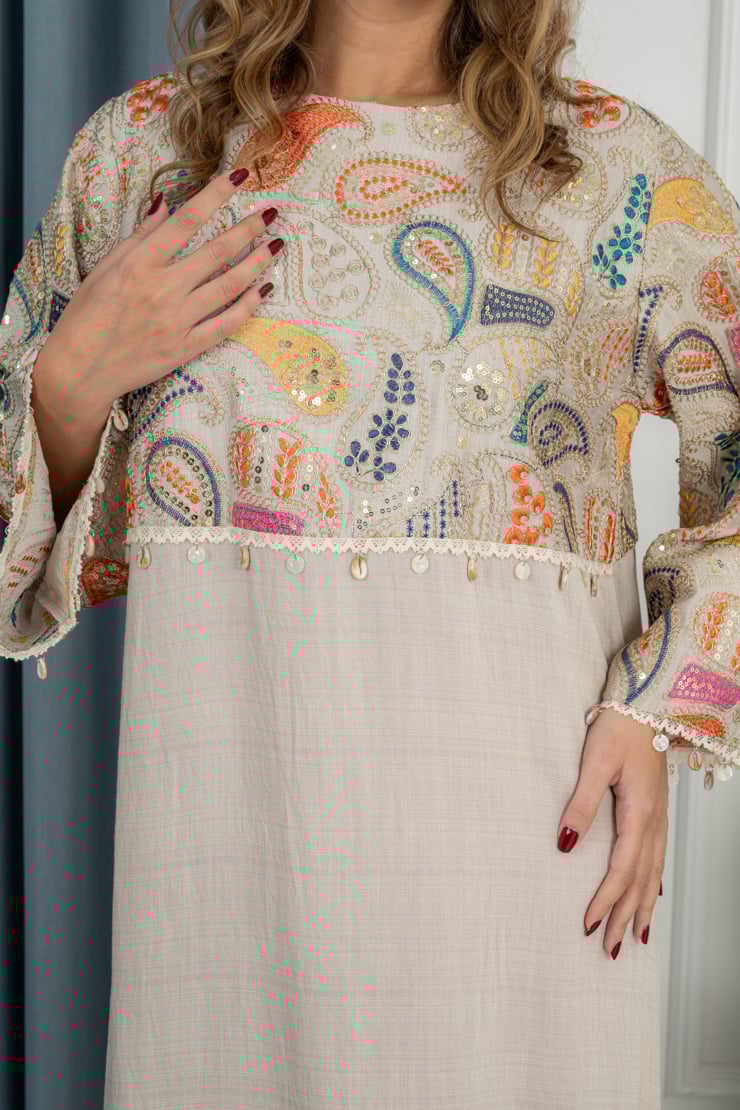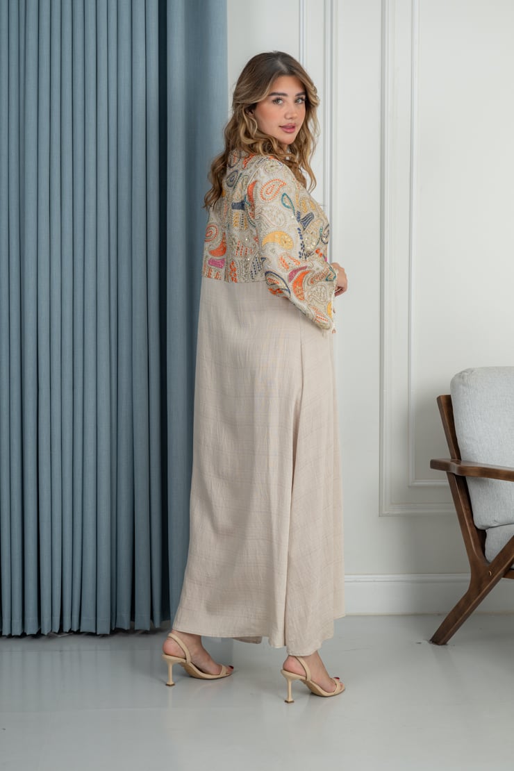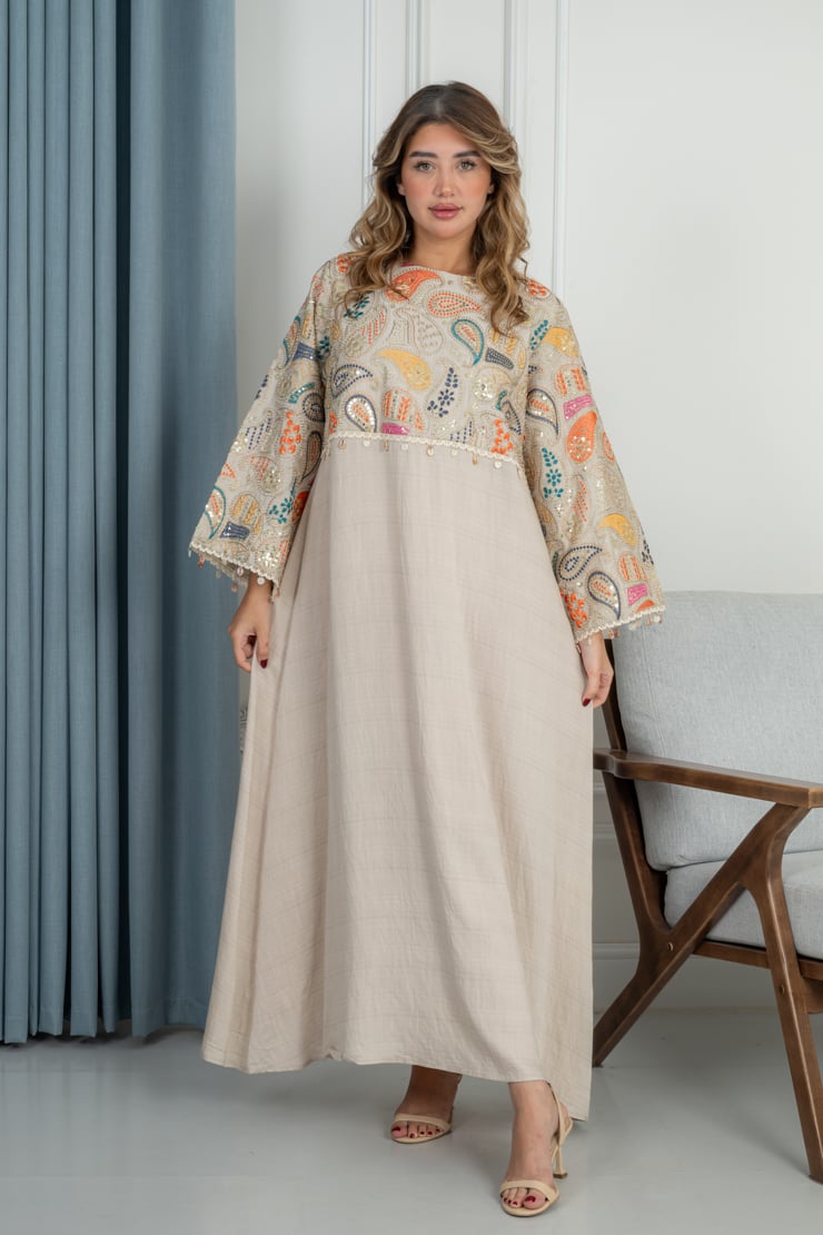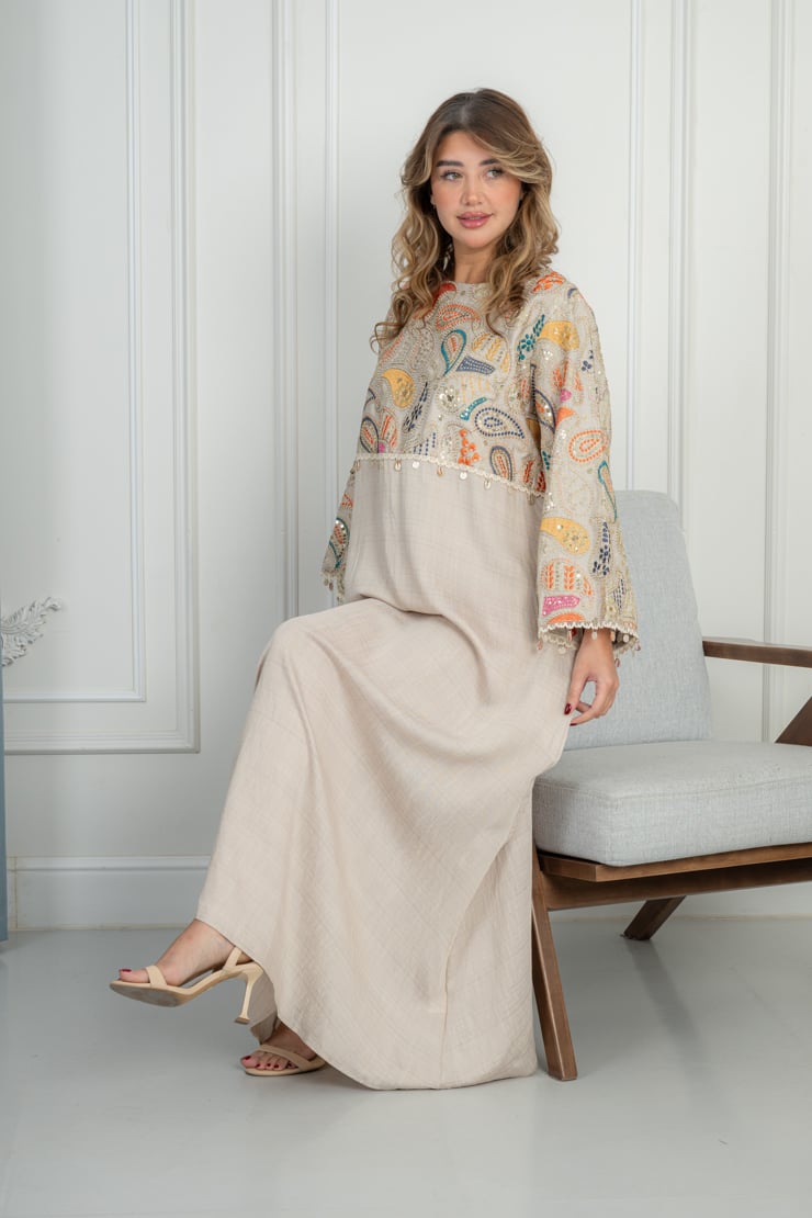 جلابية أنيقة تجمع بين البساطة والذوق الفني، بتصميم مريح ولمسة عصرية ناعمة تمنحك إطلالة راقية تناسب مختلف الأوقات.