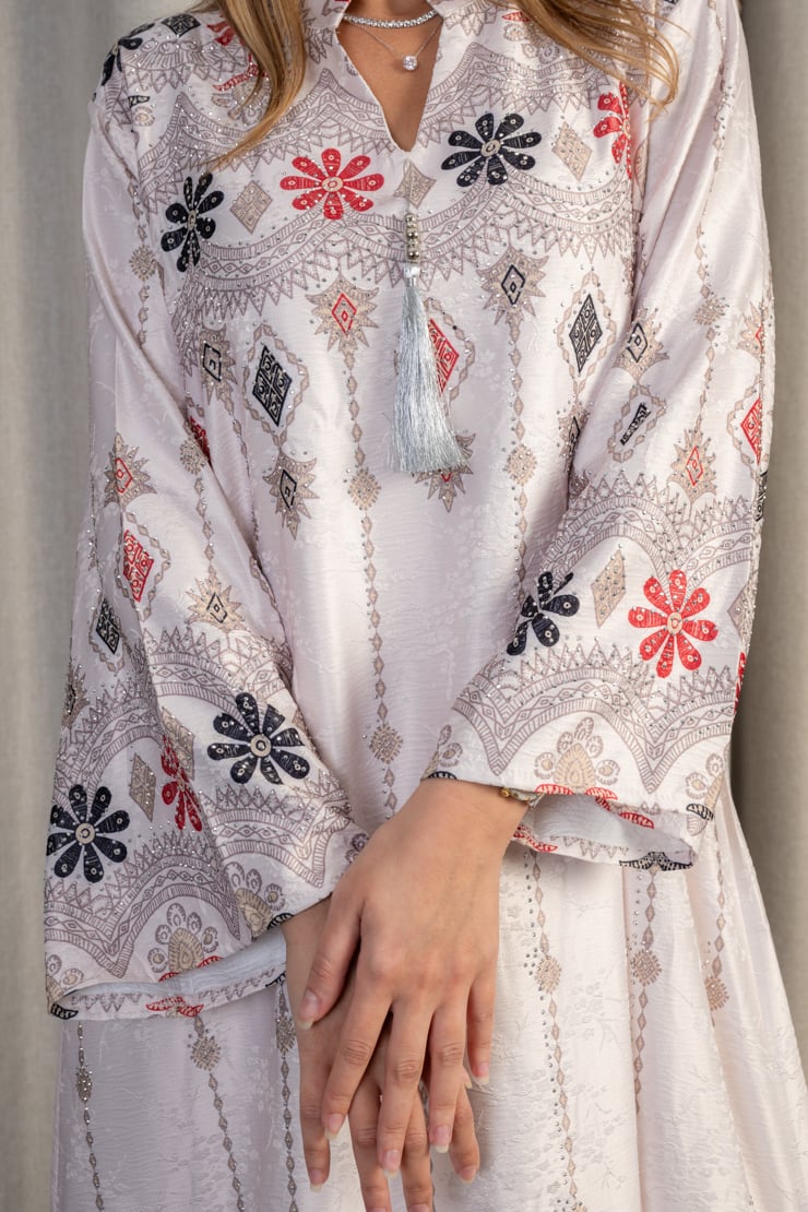 الزخرفة: تطريز تراثي ناعم بألوان متناغمة