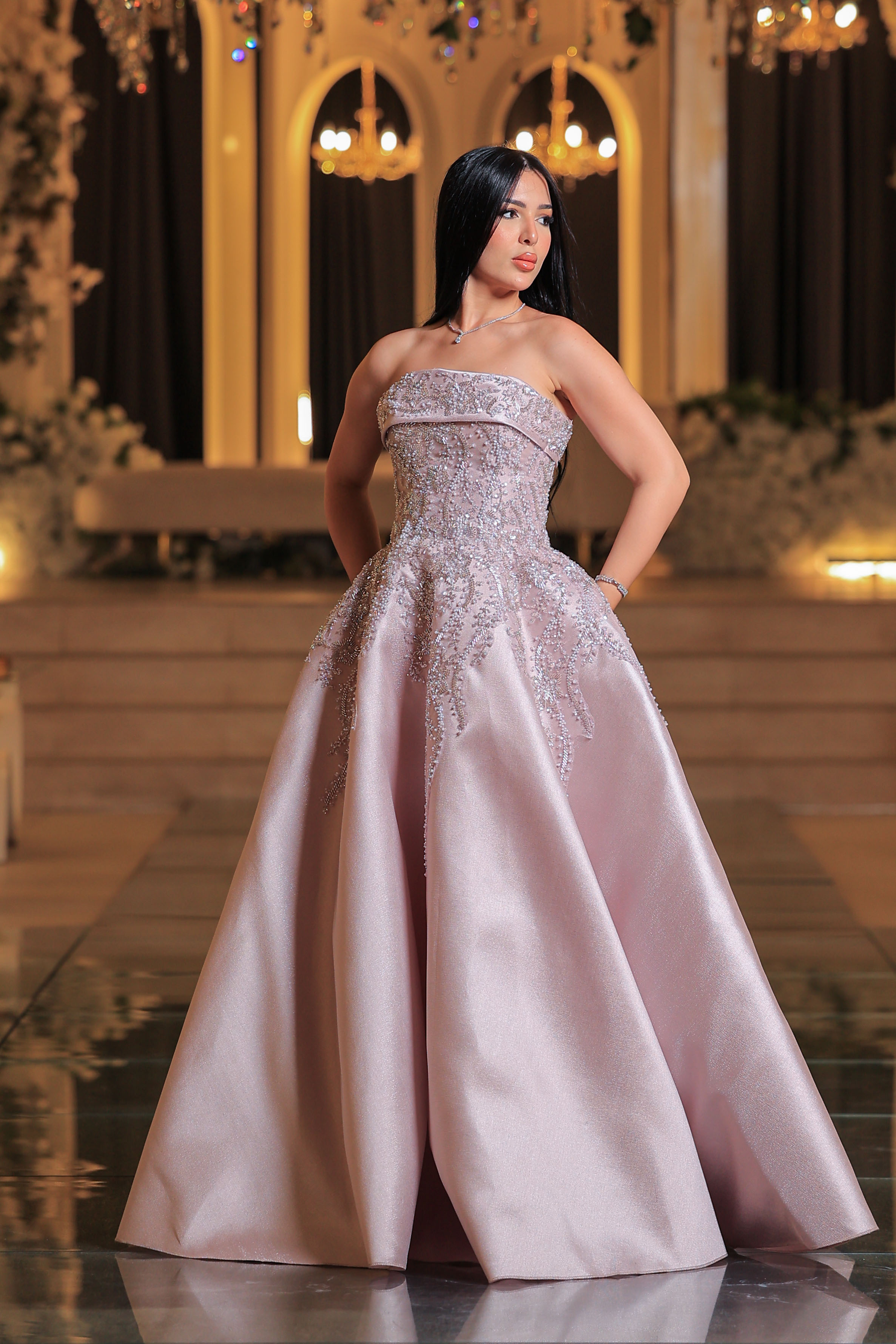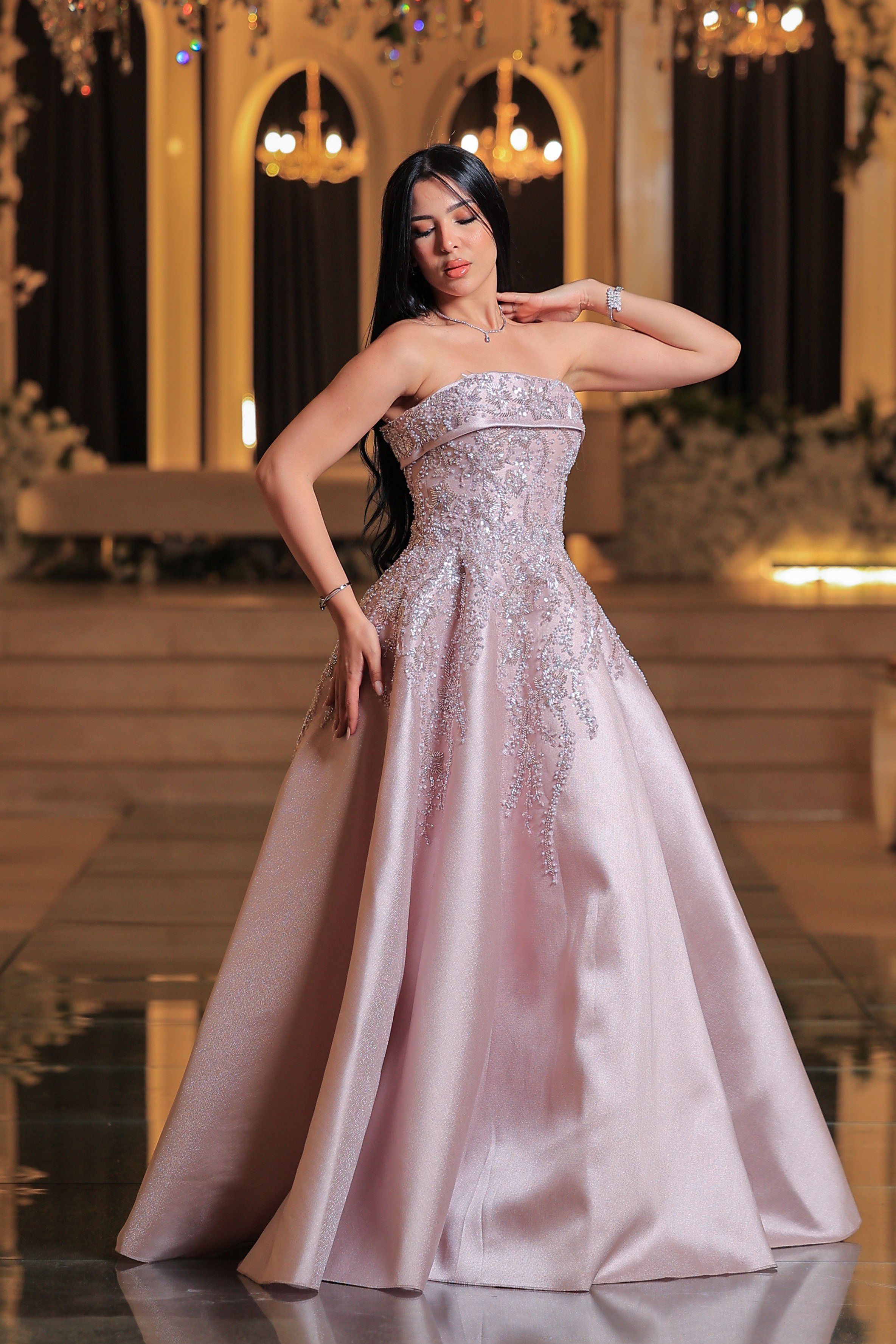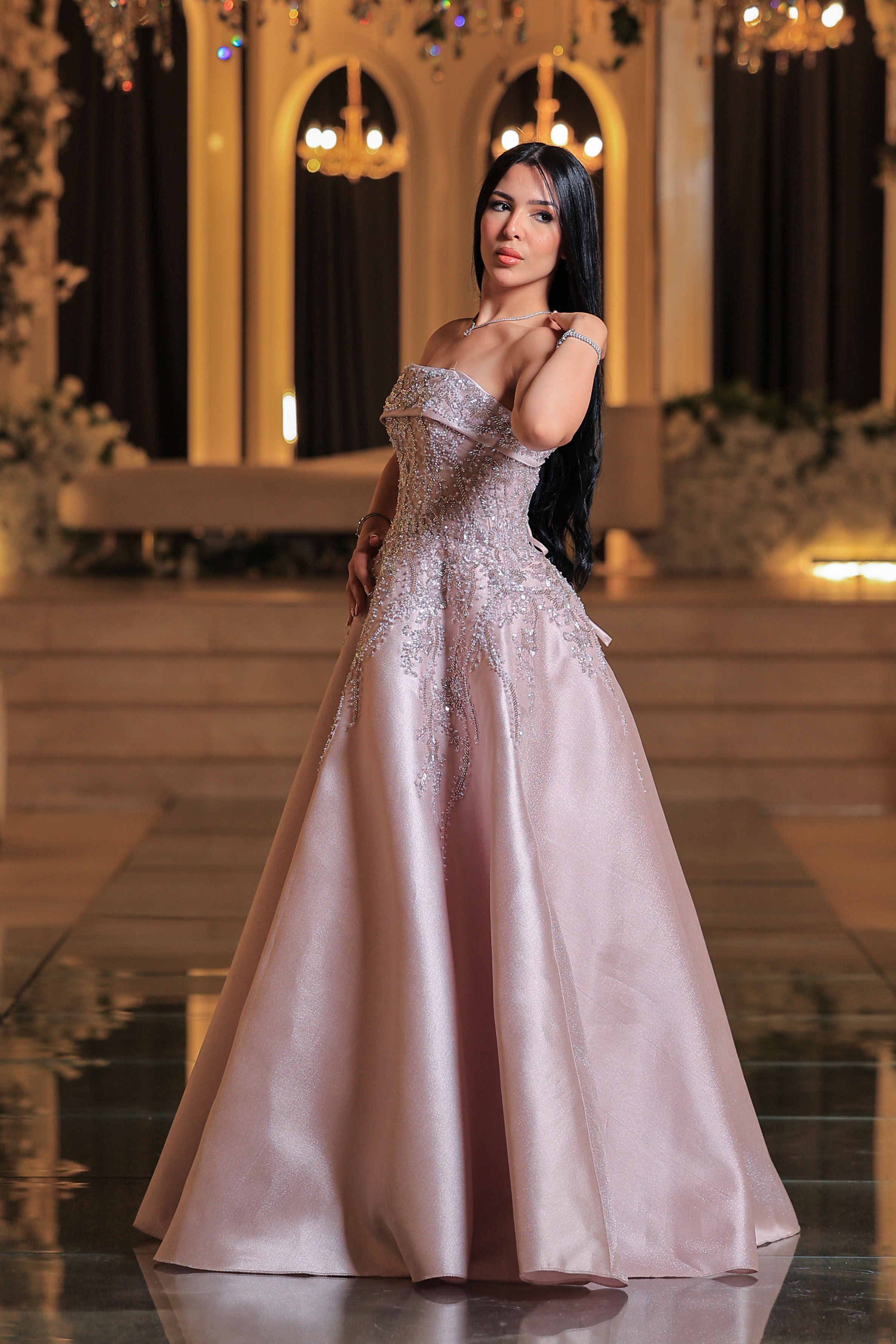 فستان سهرة وردي ملكي مطرز من Loraتألقي بإطلالة أنثوية راقية مع هذا الفستان الوردي الفخم من Lora، المصمم بأسلوب ملكي يجمع بين الرقة والفخامة في آنٍ واحد.