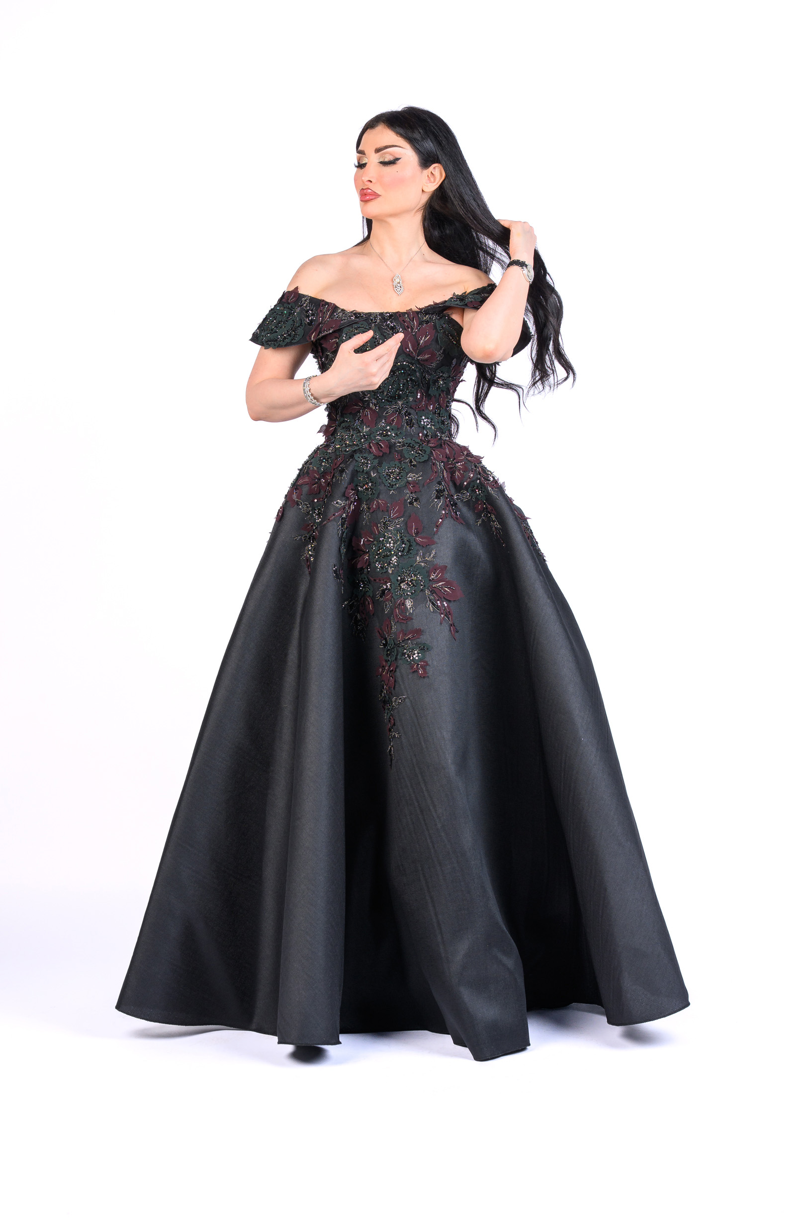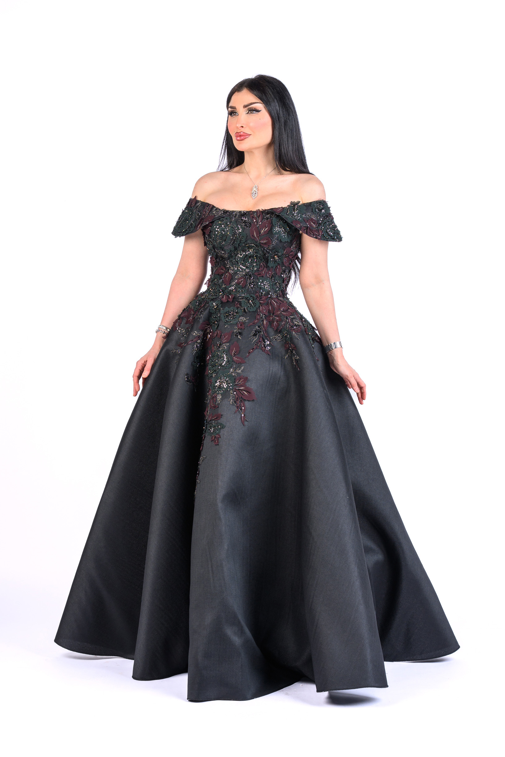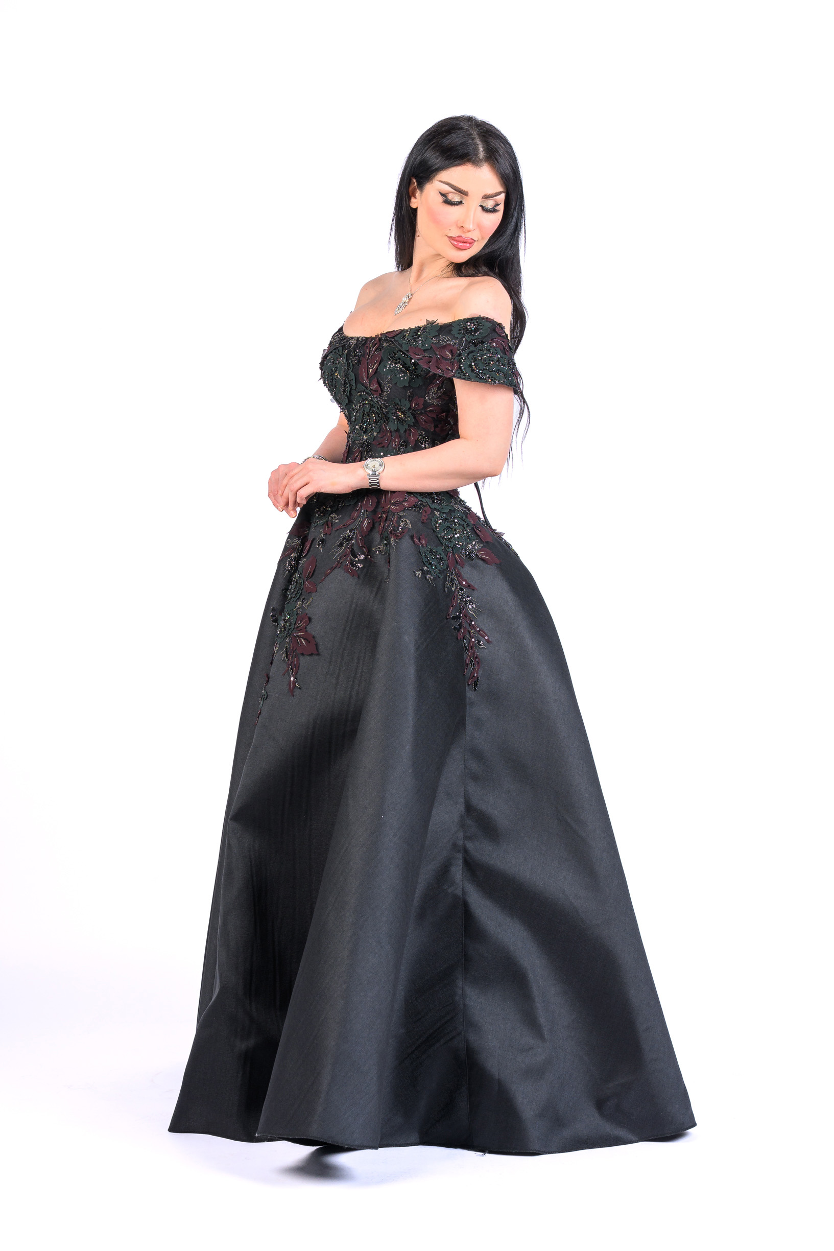فستان سهر نسائي أنيق بون كلاسيكي فاخر وكسرات في الصدر مع كلفة يلائم أكبر المناسبات والاحتفالات
