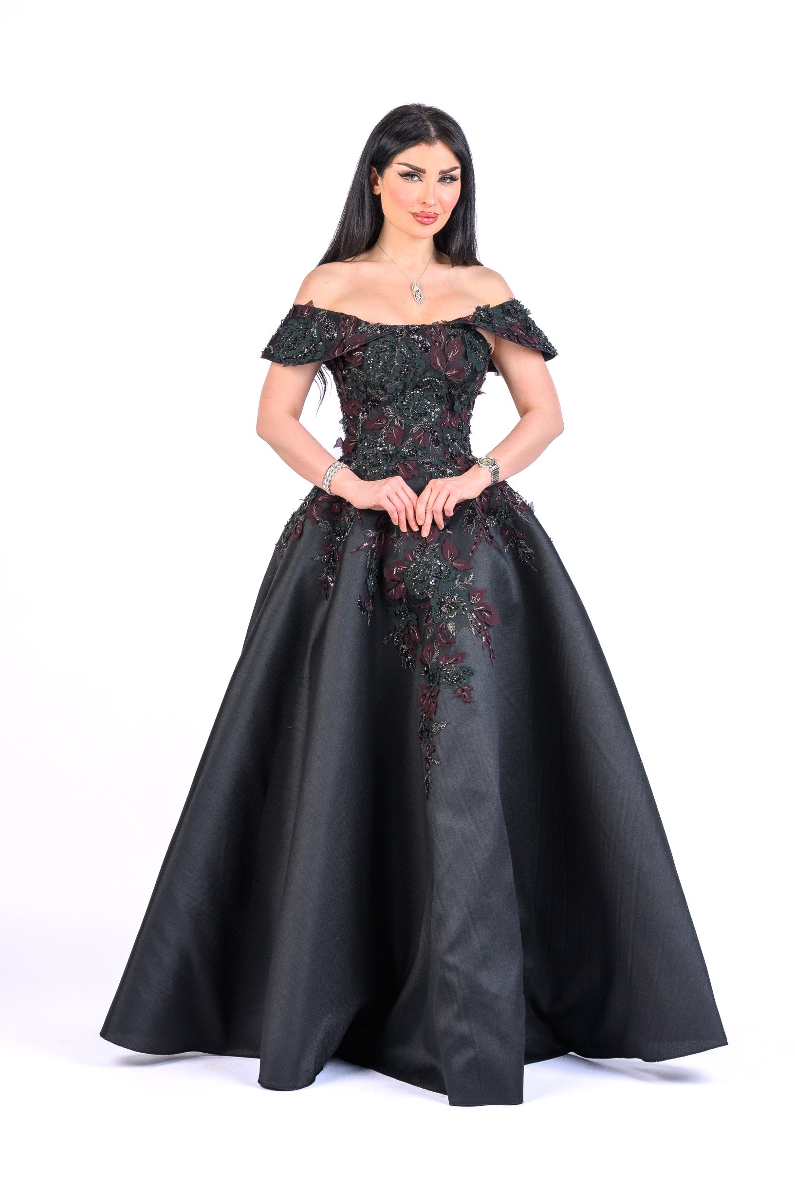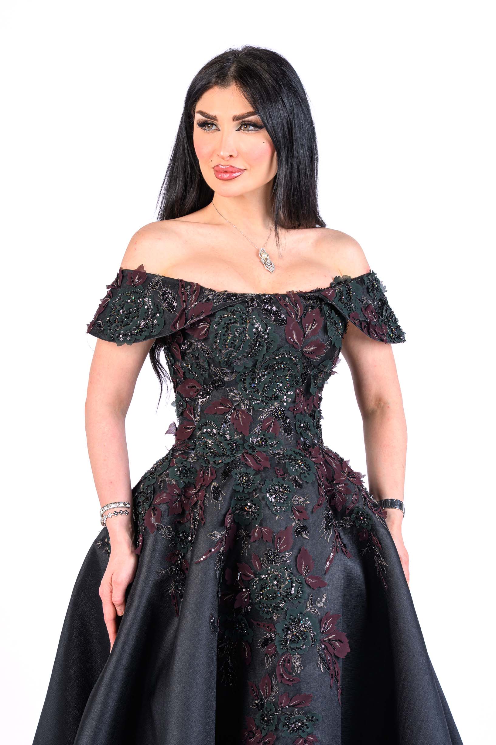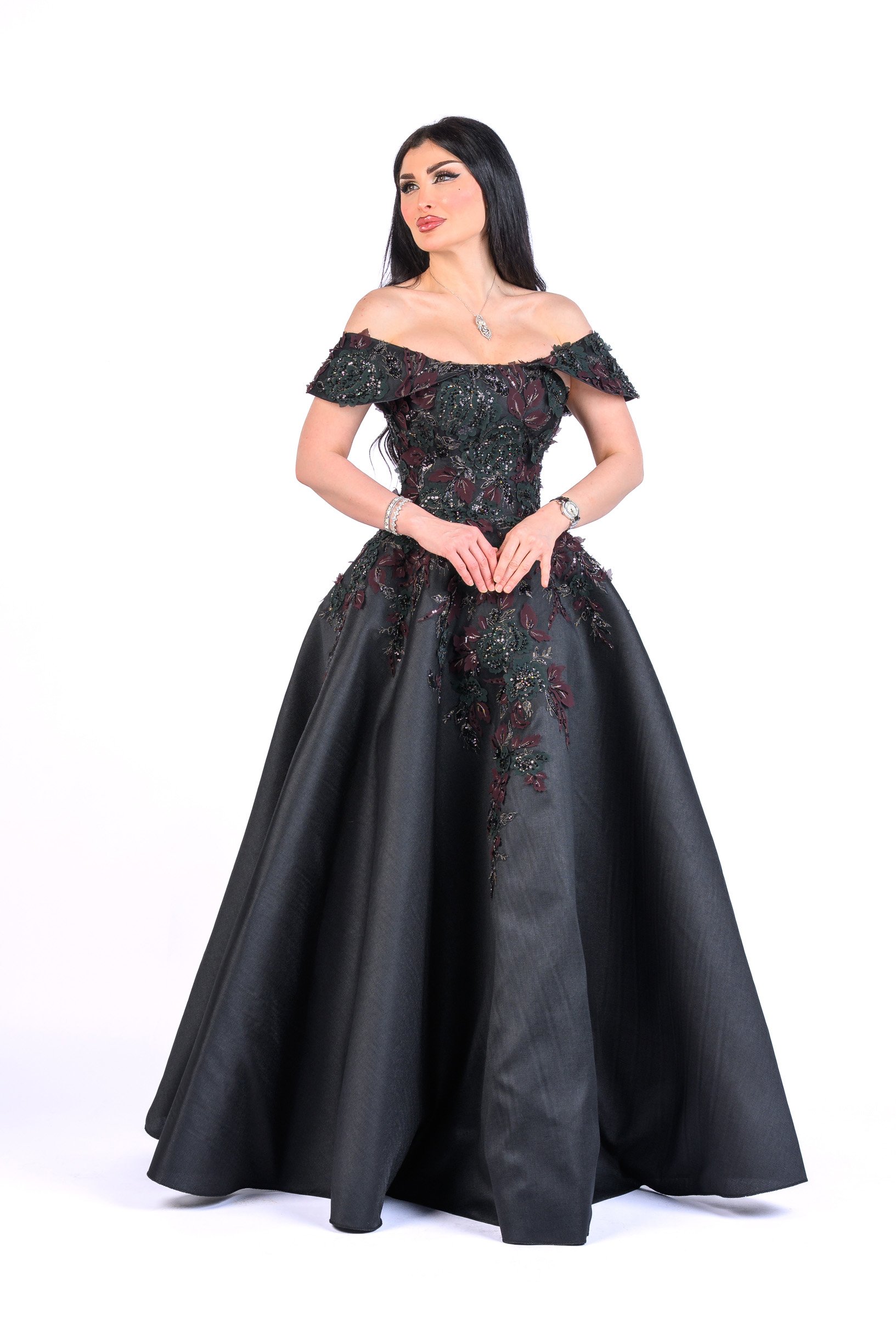 فستان سهر نسائي أنيق بون كلاسيكي فاخر وكسرات في الصدر مع كلفة يلائم أكبر المناسبات والاحتفالات