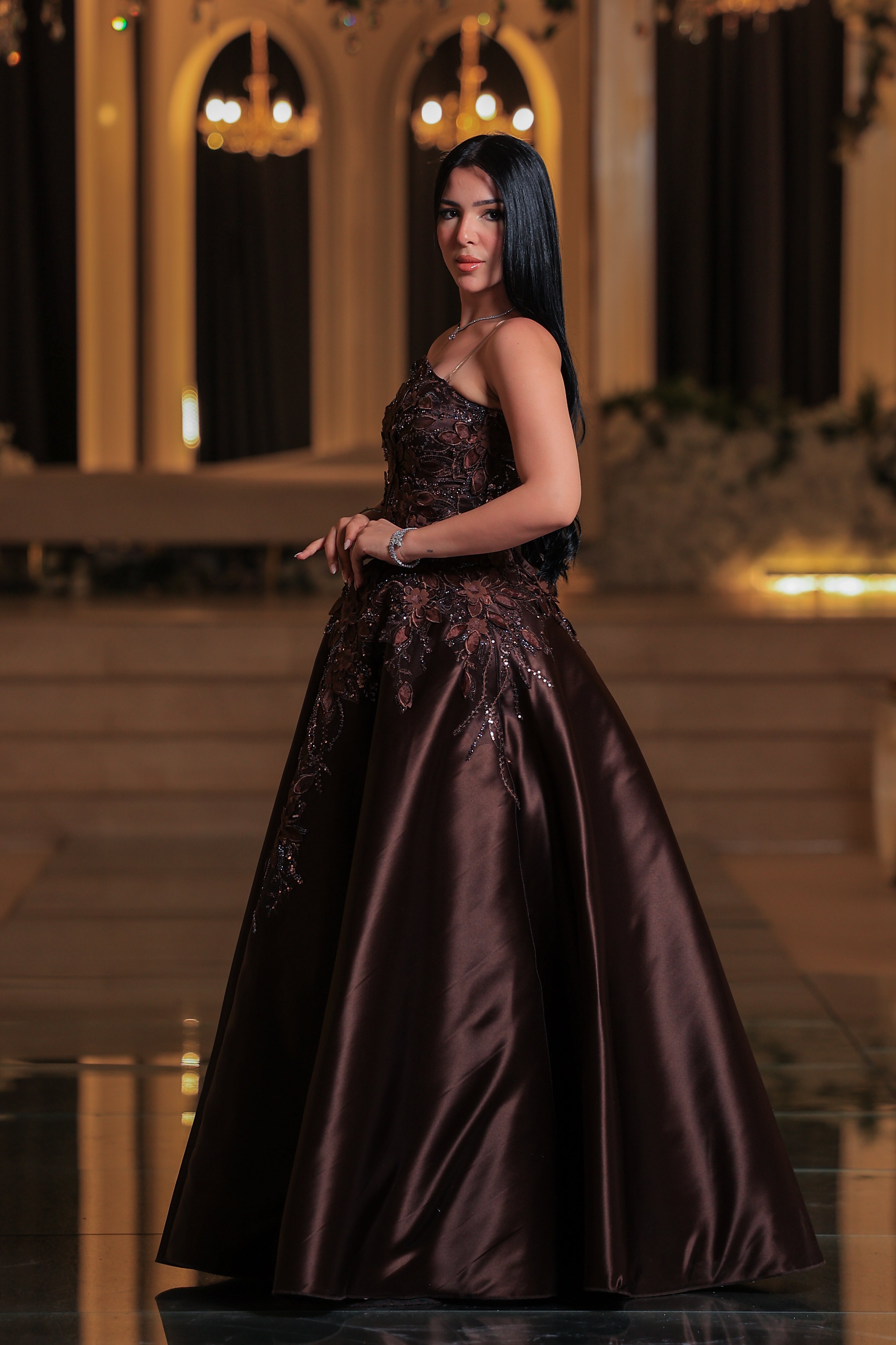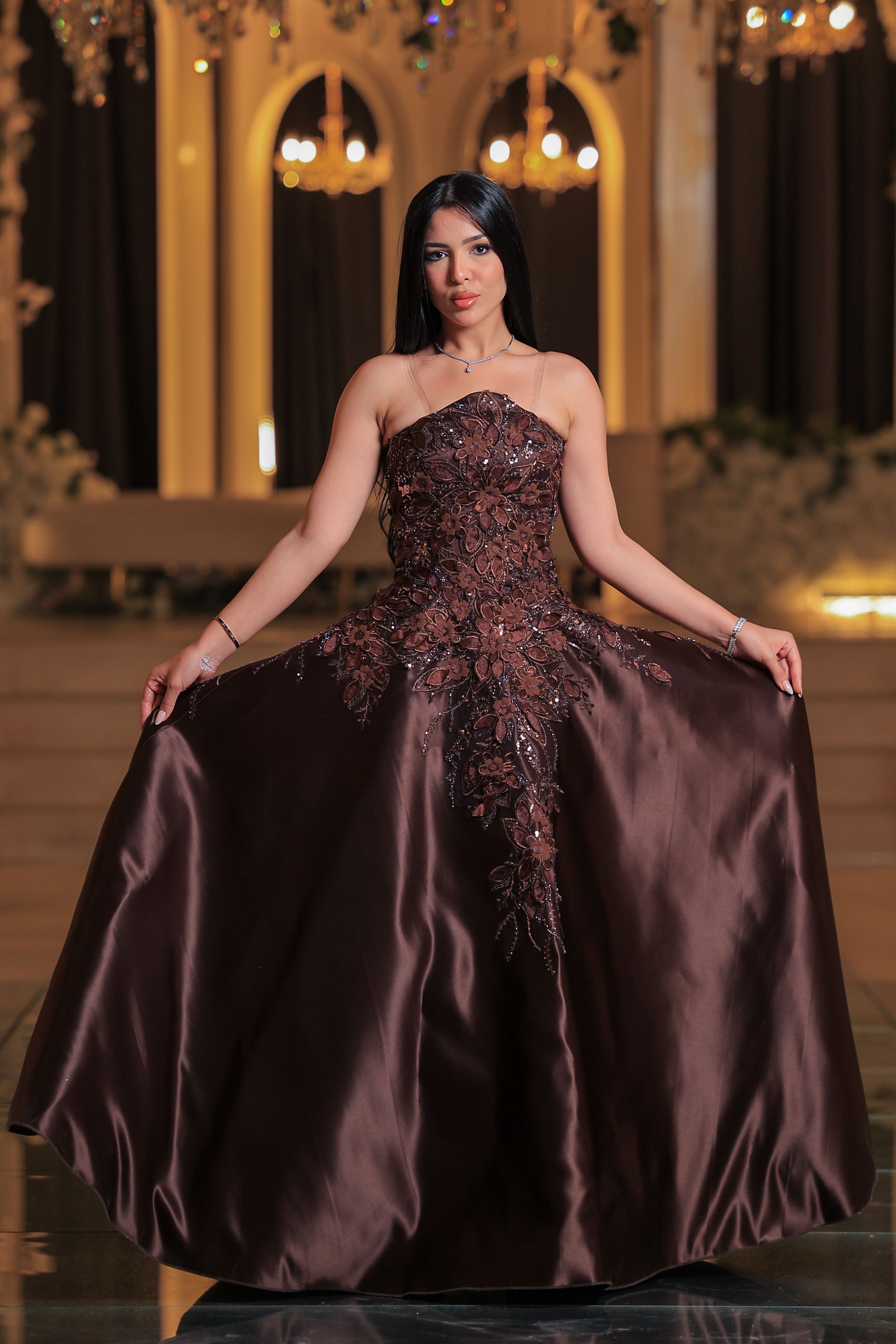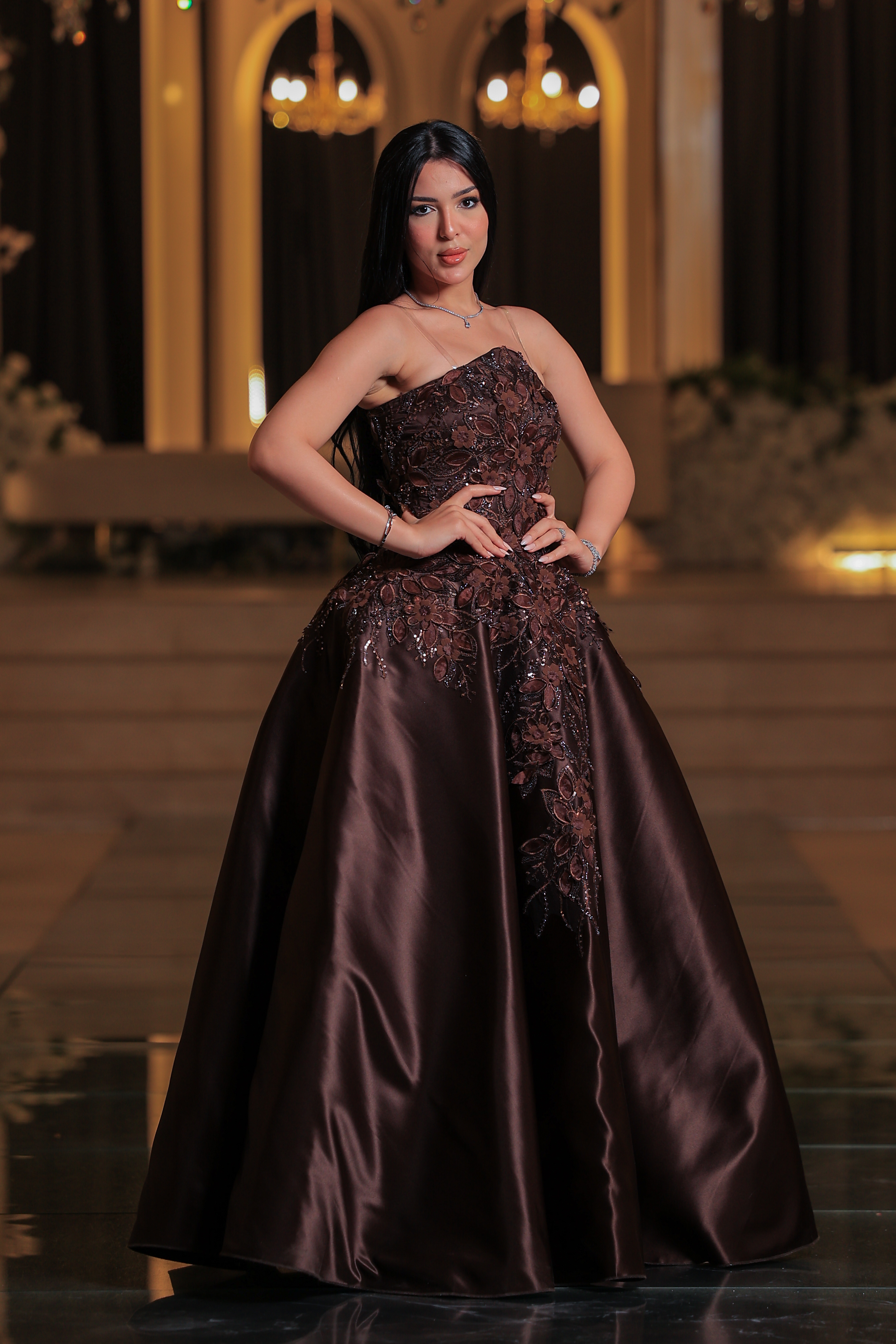 فستان سهرة بني مطرز بتصميم ملكي فاخر من Loraتميّزي بحضور راقٍ وفخم مع هذا الفستان البني الفاخر من Lora، المصمم بعناية ليبرز أنوثتك وأناقتك بأسلوب ملكي أنيق.
